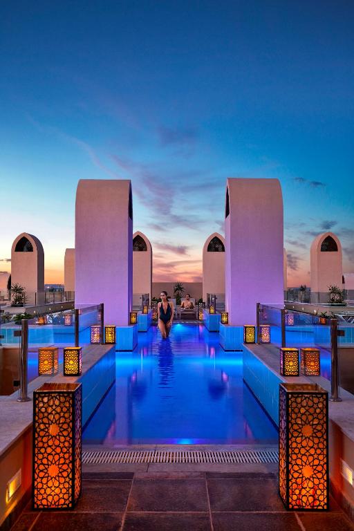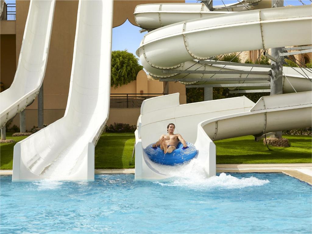 -Guests can work out at the gym or enjoy an array of activities on site or in the surroundings, including diving and water sports. It offers a certified aqua park with a Lazy River, a 9-hole golf course and souk.