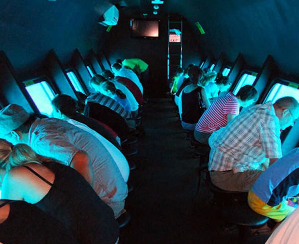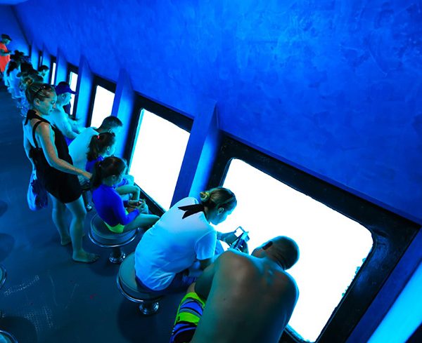 After reaching the reef, tourists are invited to the lower deck of the ship from where they can observe the fish and the coral reef.